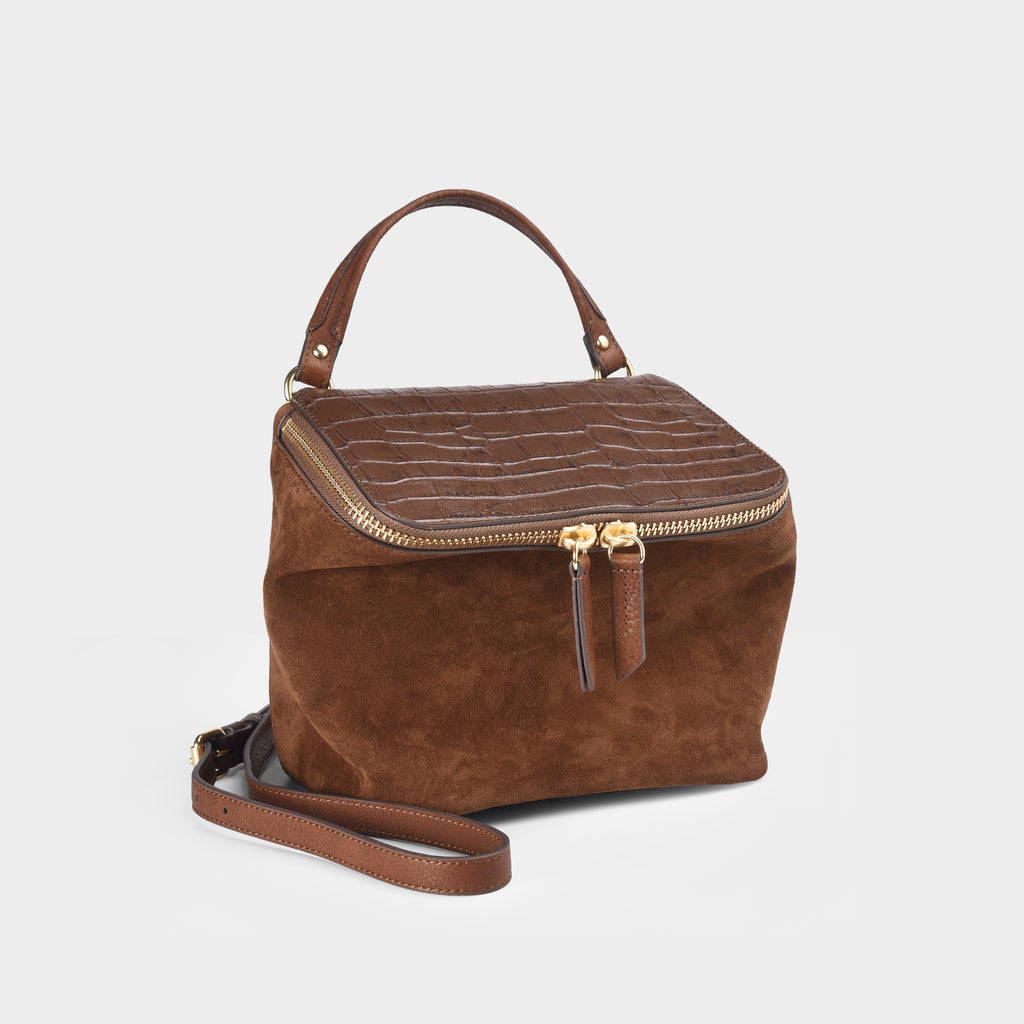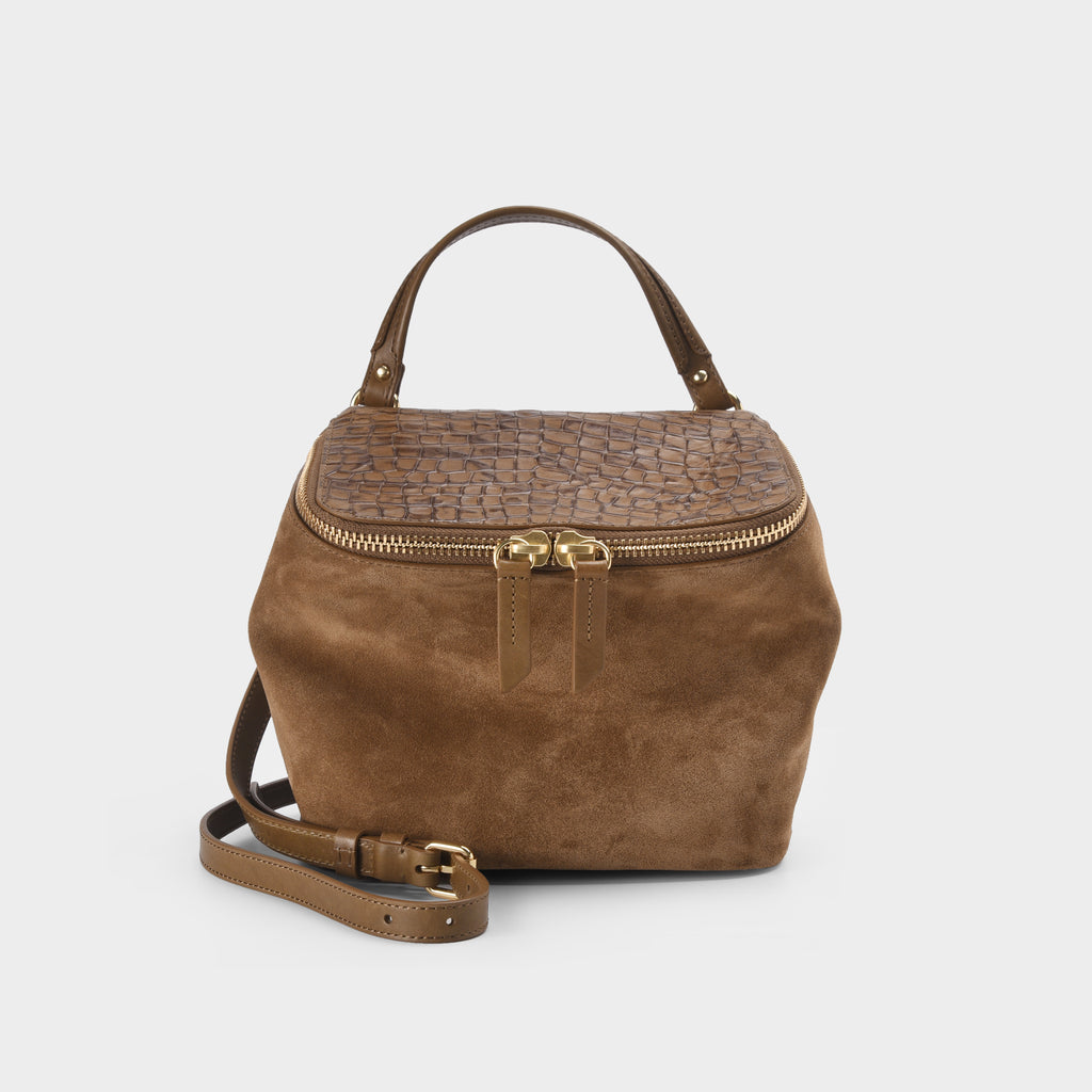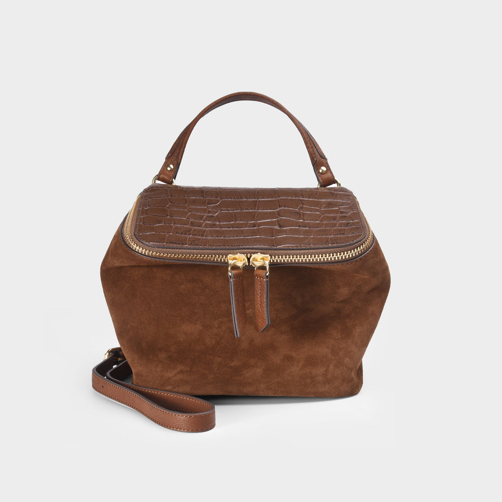 Our newest leather bag is finally here, and it's everything you've been needing. We combined suede, vegetable-tanned leather, and a croco embossing to create the best top-handle bag you've ever seen. With a wide mouth for ease and an extra crossbody strap, this bag can do it all.