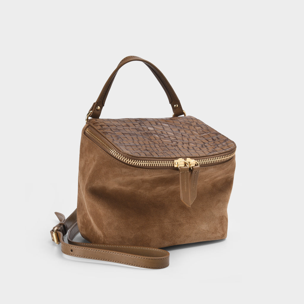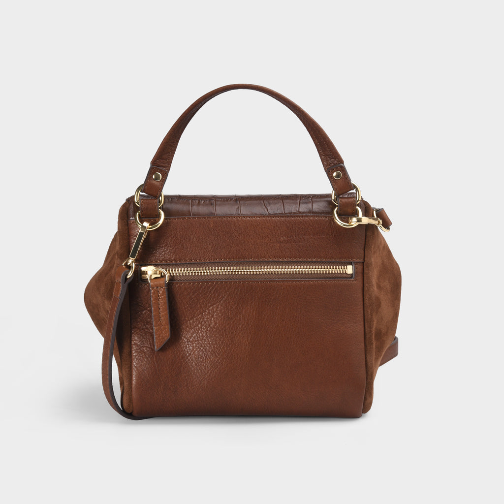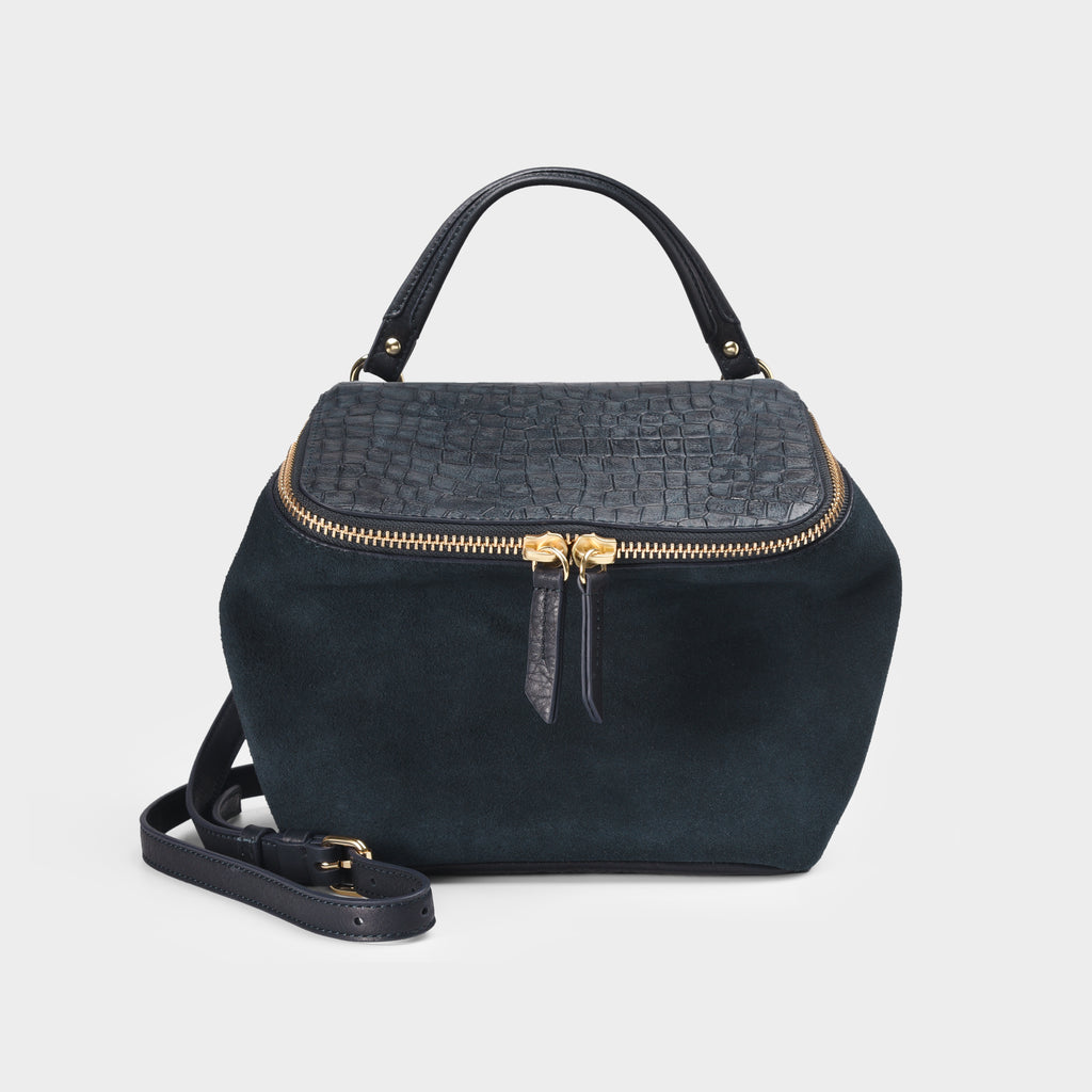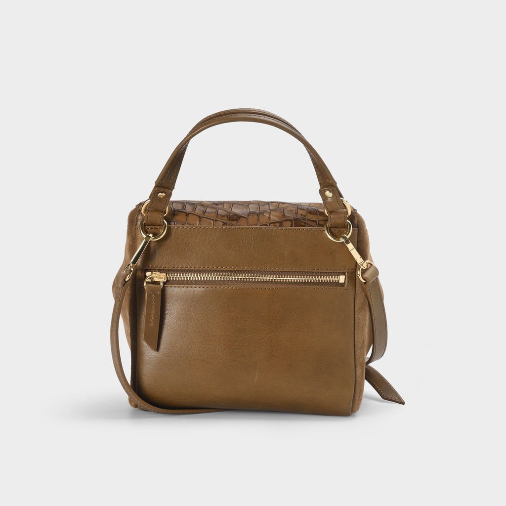 Our newest leather bag is finally here, and it's everything you've been needing. We combined suede, vegetable-tanned leather, and a croco embossing to create the best top-handle bag you've ever seen. With a wide mouth for ease and an extra crossbody strap, this bag can do it all.