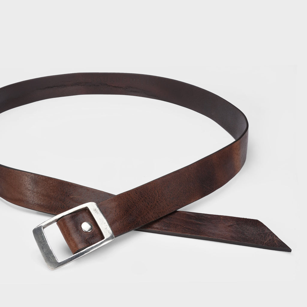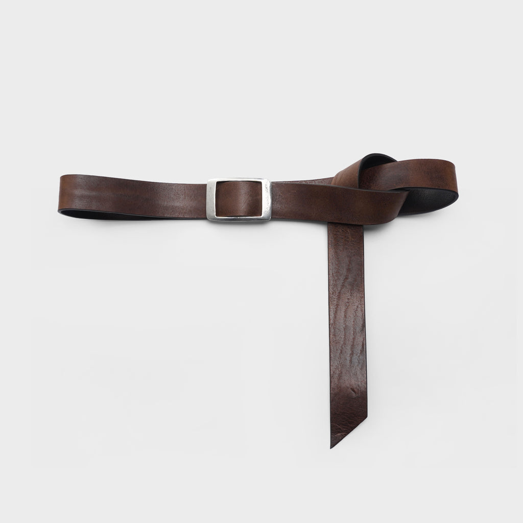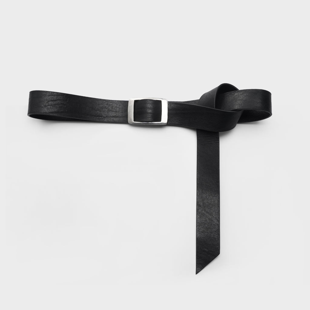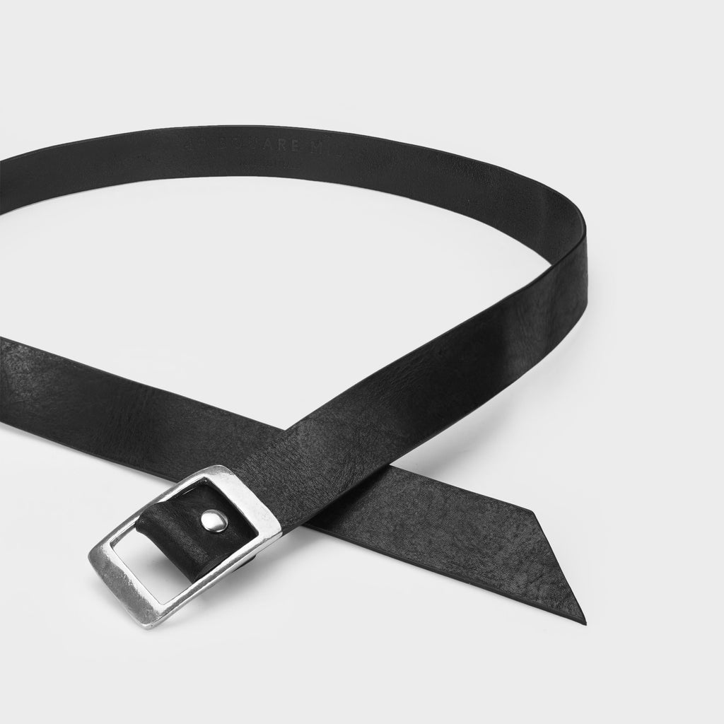 This newest belt is pure luxury. We've used a slider buckle from Italy made of Pewter and paired it with a pure vegetable-tanned Italian leather that has intentional wrinkles and character. This belt comes in one size and is meant to have an extended tail.